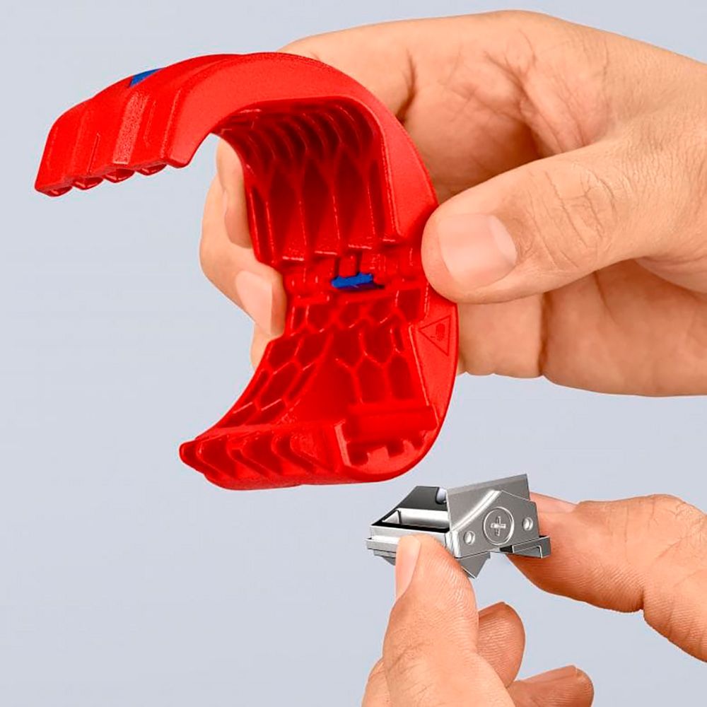 CORTATUBOS BiX® PARA TUBOS DE PLÁSTICO Y MANGUITOS DE SELLADO. CORTA TUBOS DE PLÁSTICO SIN REFORZAR DE 20 A 50mm DE DIÁMETRO CON UN ESPESOR DE HASTA 2,4mm. CORTA TUBOS RÁPIDA Y LIMPIAMENTE SIN REBABAS. CORTA MANGUITOS DE SELLADO A 2 O 3mm DE LA PARED. CON CUCHILLA GIRATORIA PARA CORTAR TUBOS DE PLÁSTICO (CUCHILLA EN EL CENTRO) O MANGUITOS DE SELLADO (CUCHILLA EN EL EXTERIOR). CON MECANISMO DE BLOQUEO PARA UN TRANSPORTE SEGURO.LA HERRAMIENTA CONTIENE DOS CUCHILLAS DE RECAMBIO. HERRAMIENTA FABRICADA EN ESTABLE PLÁSTICO REFORZADO, CUCHILLA DE ZINC FUNDIDO A PRESIÓN>CUCHILLAS DE ACERO INOXIDABLE ESPECIAL. FABRICADAS EN SOLINGEN
