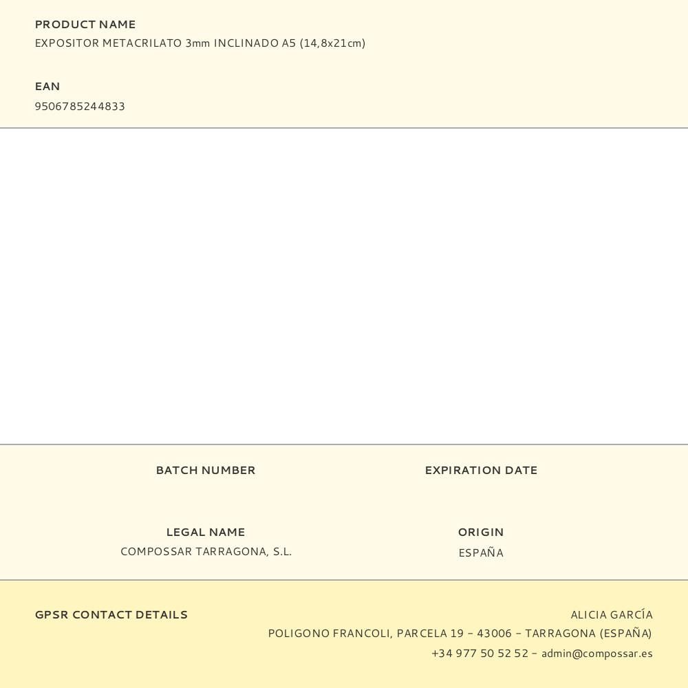 EXPOSITOR METACRILATO 3mm INCLINADO A5 (14,8x21cm)