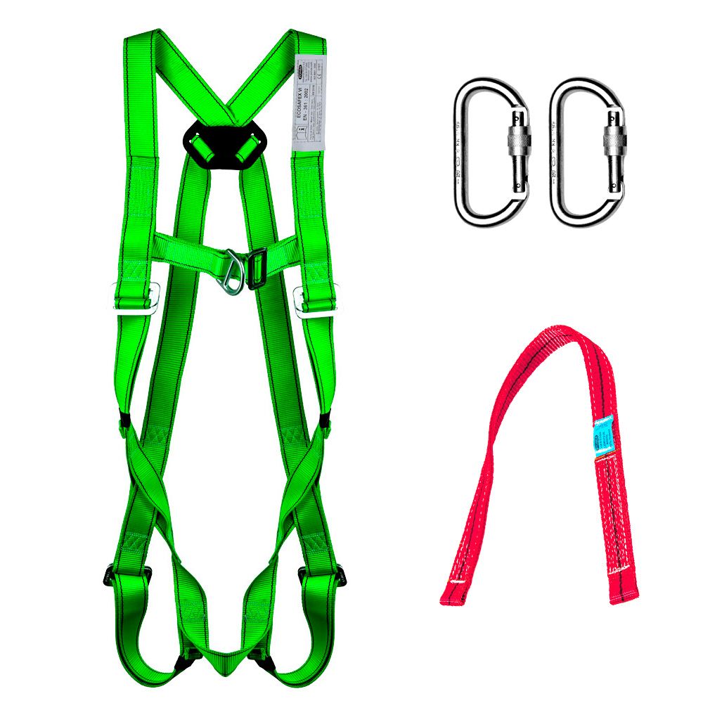 ARNÉS ECOSAFEX 6 031,042,001,001 EL ARNÉS DISPONE DE 2 PUNTOS DE ANCLAJE DORSAL Y PECTORAL METÁLICO. ADEMÁS ES REGULABLE MEDIANTE HEBILLAS PLANAS. ES MUY LIGERO Y DE FÁCIL COLOCACIÓN. PERMITE LA POSIBILIDAD DE ANCLARSE TANTO DELANTE COMO POR DETRÁS POR LO QUE FACILITA EL TRABAJO Y COMPLETA LA SEGURIDAD. CUMPLIENDO LA NORMATIVA EN 361:2002. PARTES TEXTILES: BANDAS DE POLIÉSTER 100% DE 45mm DE ANCHO. PARTES METÁLICAS: ALEACIONES MN, SI, C, CON TRATAMIENTO ANTICORROSIVO