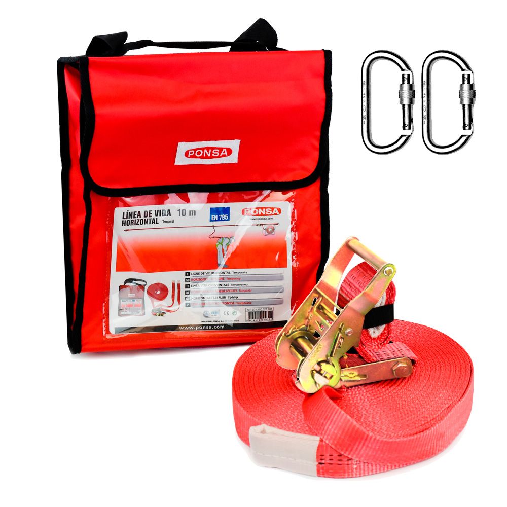LÍNEA DE VIDA HORIZONTAL 10 M 031,150,010,001 LA LÍNEA VIDA HORIZONTAL DISPONE DE UN SISTEMA TENSOR QUE PERMITE ADEMÁS DE TENSAR, AJUSTAR A LA LONGITUD NECESARIA QUEDANDO LA CINTA SOBRANTE RECOGIDA EN LA BOLSA QUE LLEVA INCORPORADA. FÁCIL DE INSTALAR Y LIGERA.PARA EL USO CON DOS OPERARIOS ACONSEJAMOS UN PUNTO DE ANCLAJE ENTRE ELLOS. TEMPERATURA DE USO: -40ºC A 80ºC. EN 795:2012 TIPO B CEN-TS 16415:2013 MATERIALES :PARTE TEXTILES: BANDA DE POLIÉSTER 100% DE 35mm DE ANCHO.PARTES METÁLICAS: TENSOR: ALEACIÓN DE ACERO CON ACABADO ANTICORROSIVO (ZINCADO)MOSQUETÓN: ALUMINIO, AISI 14135, AISI 1215 ACABADO ANTICORROSIVO (ZINCADO)