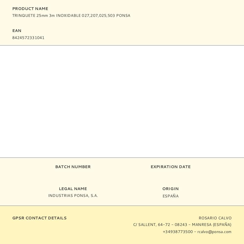 TRINQUETE 25mm 3m INOXIDABLE 027,207,025,503 PONSA