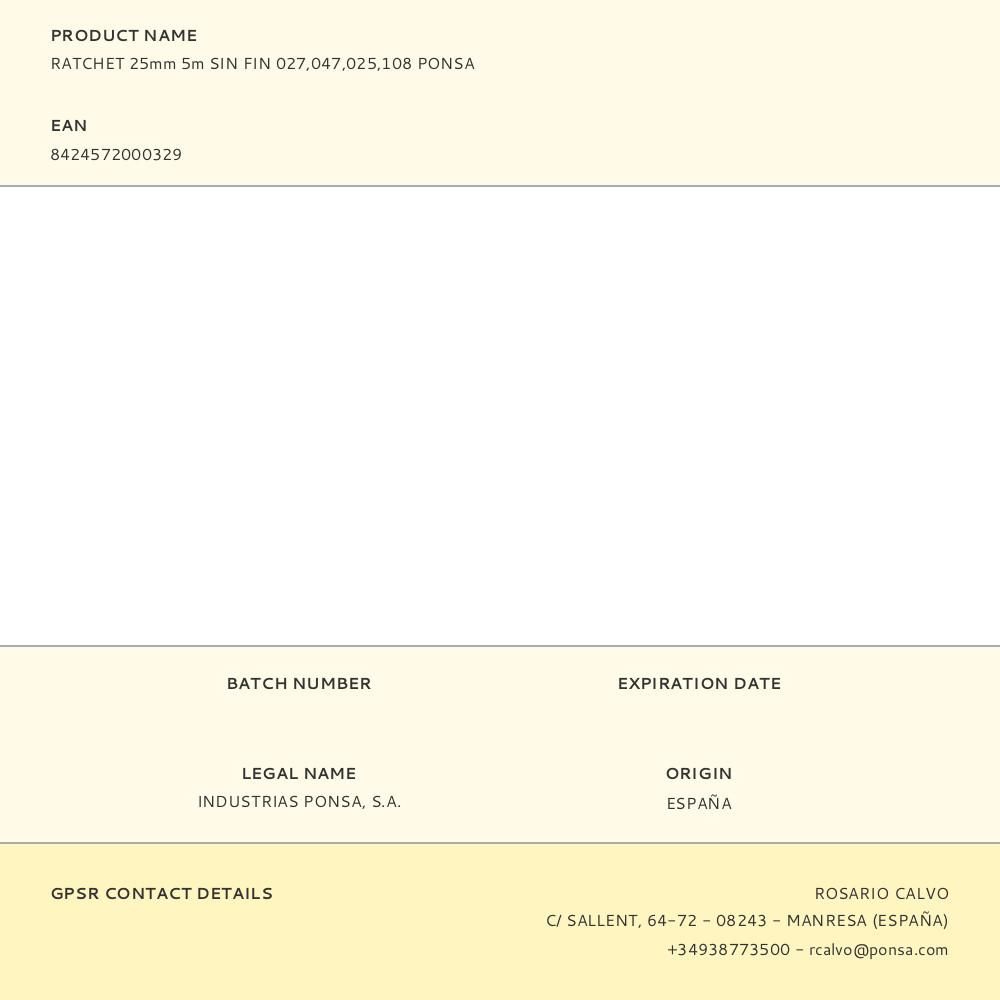 RATCHET 25mm 5m SIN FIN 027,047,025,108 PONSA