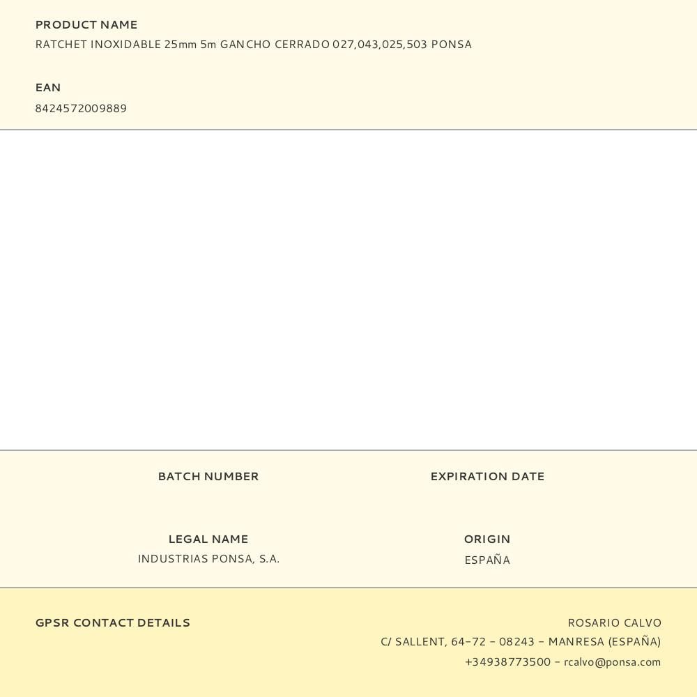 RATCHET INOXIDABLE 25mm 5m GANCHO CERRADO 027,043,025,503 PONSA