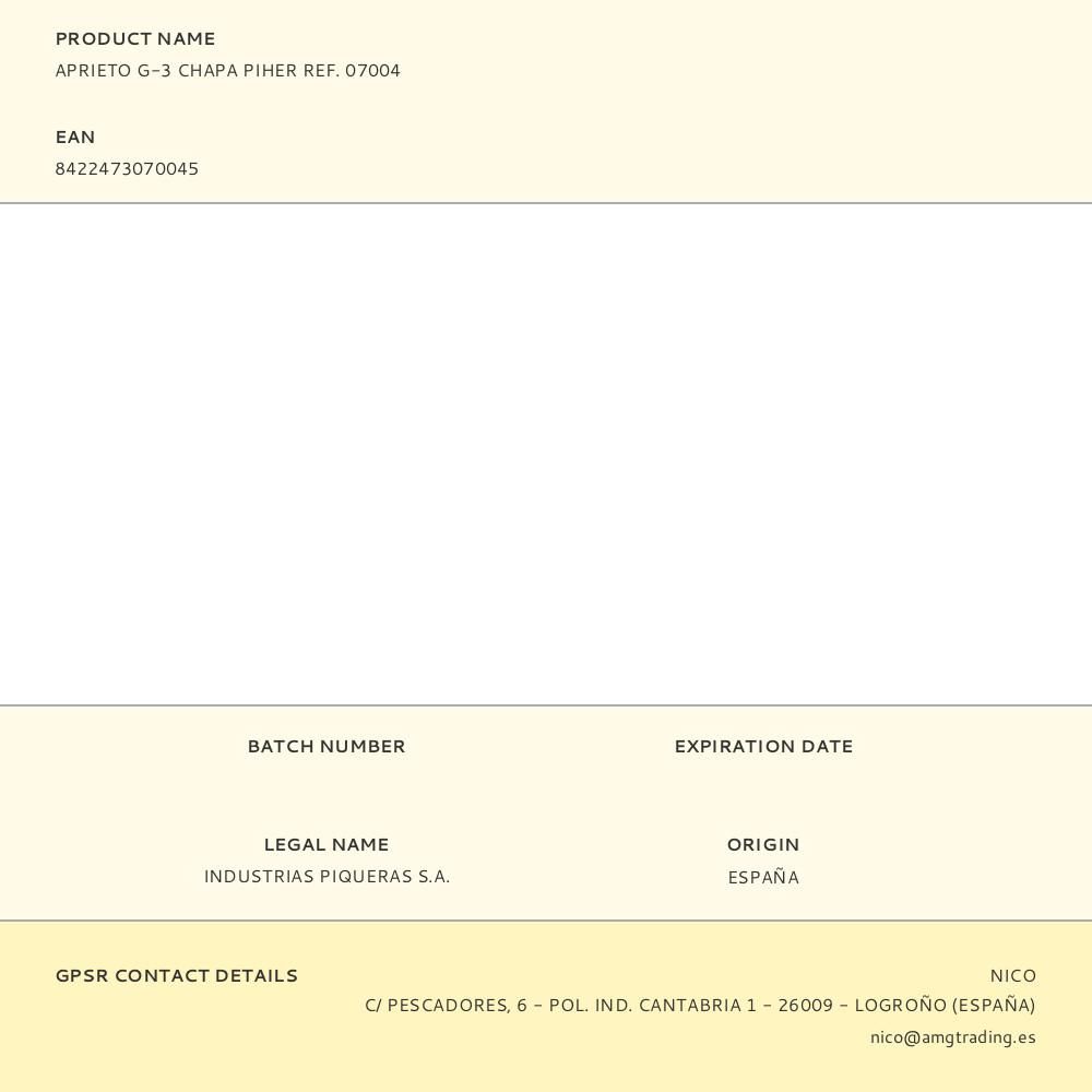 APRIETO G-3 CHAPA 7 x 10 x 1cm