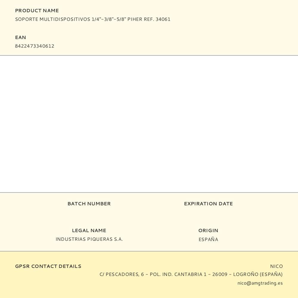 SOPORTE MULTIDISPOSITIVOS 1/4"-3/8"-5/8" PIHER REF. 34061
