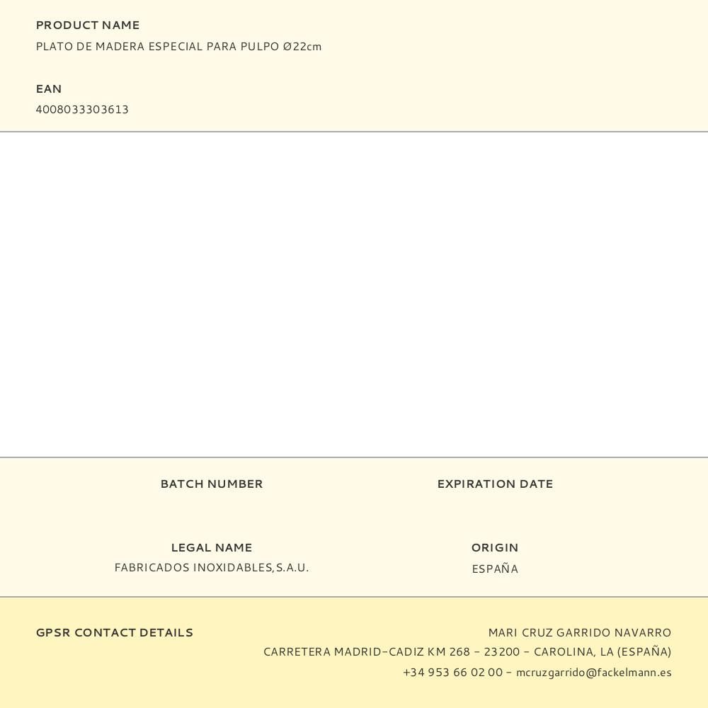 PLATO DE MADERA ESPECIAL PARA PULPO Ø22 cm
