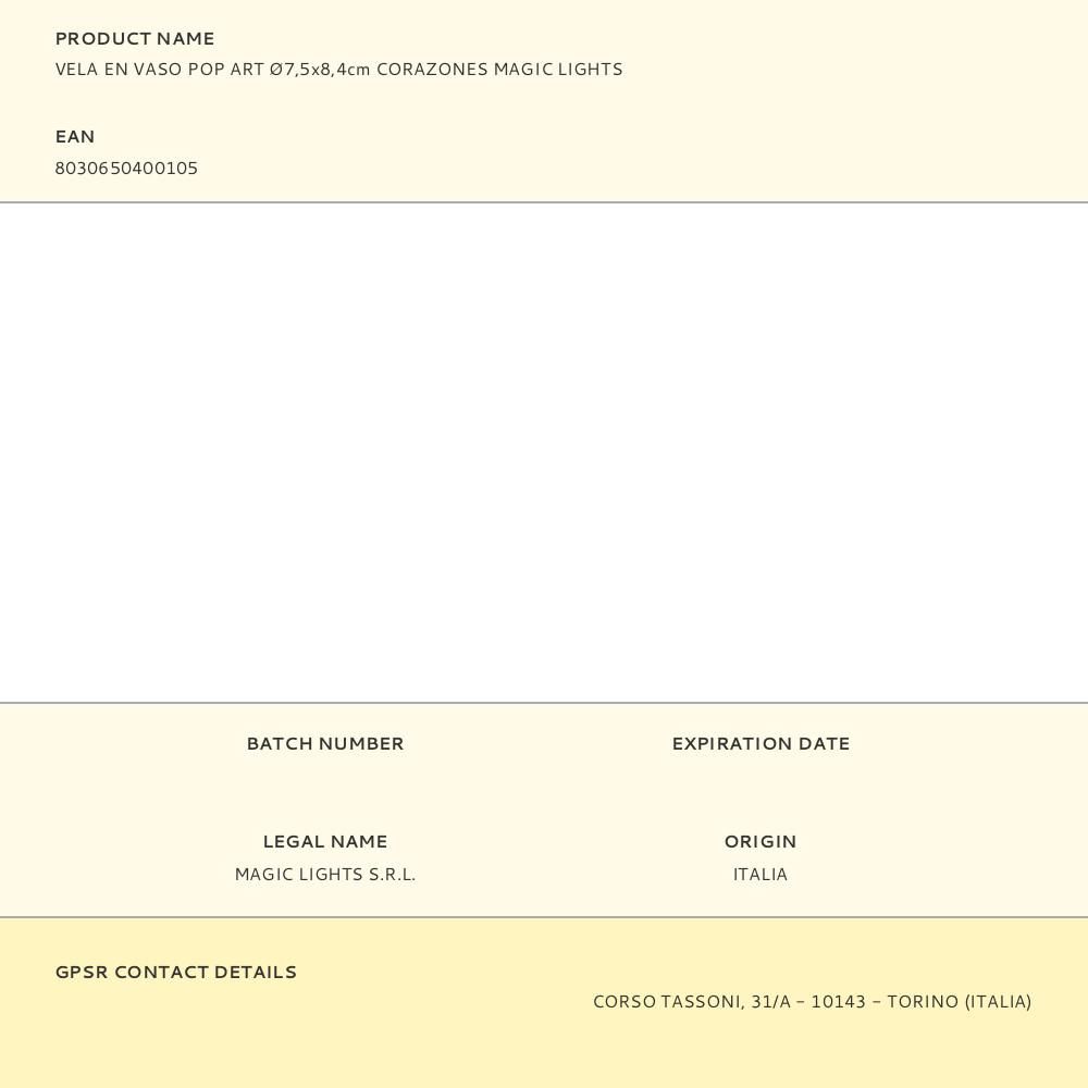 VELA EN VASO POP ART Ø7,5x8,4cm CORAZONES MAGIC LIGHTS