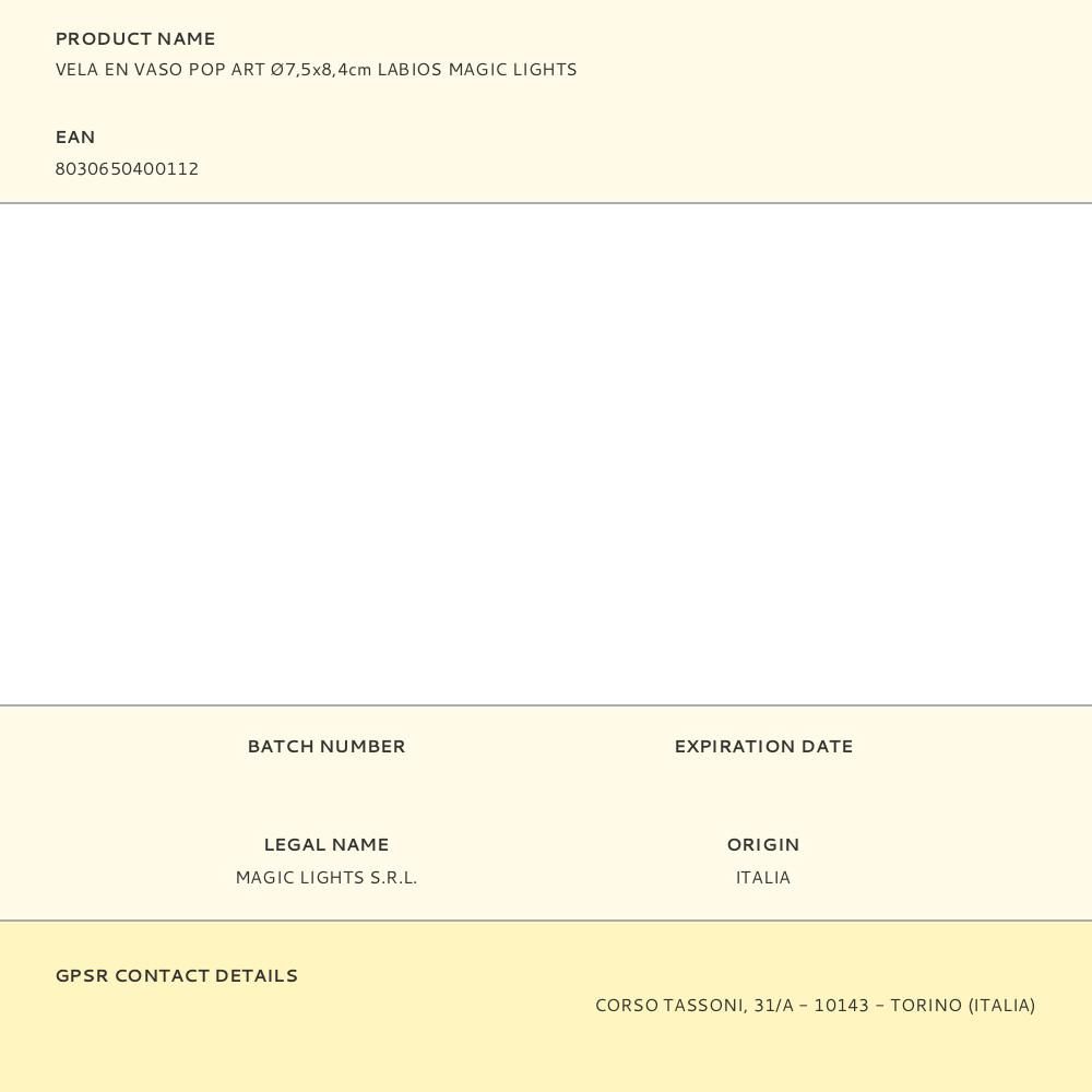 VELA EN VASO POP ART Ø7,5x8,4cm LABIOS MAGIC LIGHTS