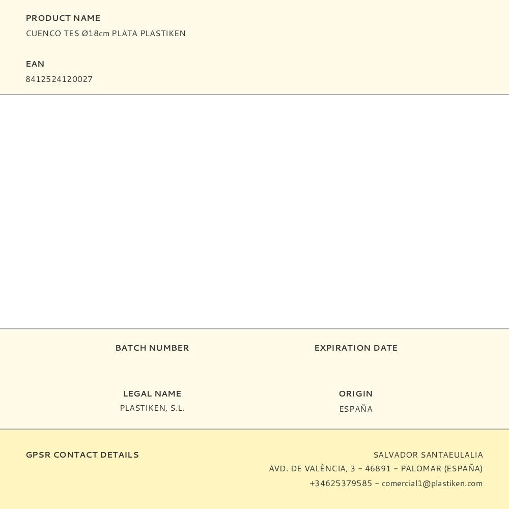 CUENCO TES Ø18cm PLATA PLASTIKEN