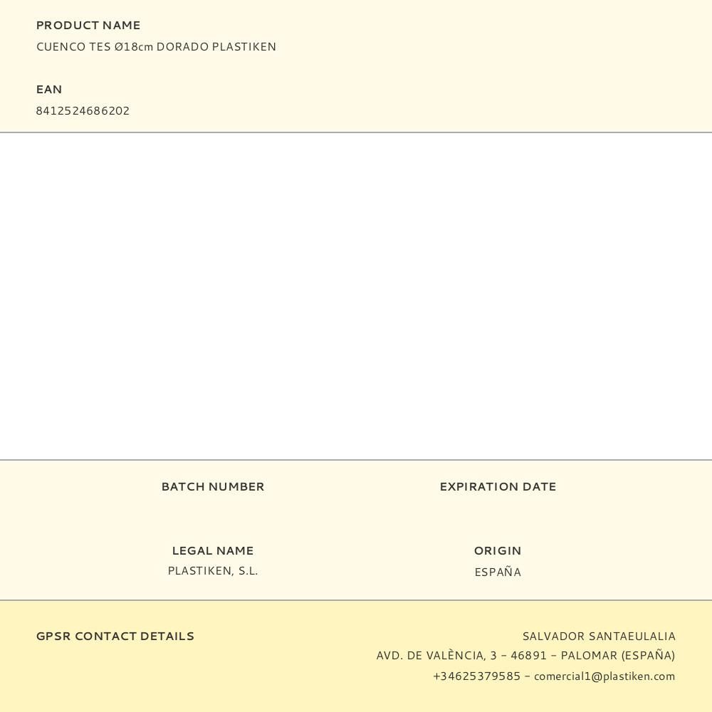 CUENCO TES Ø18cm DORADO PLASTIKEN