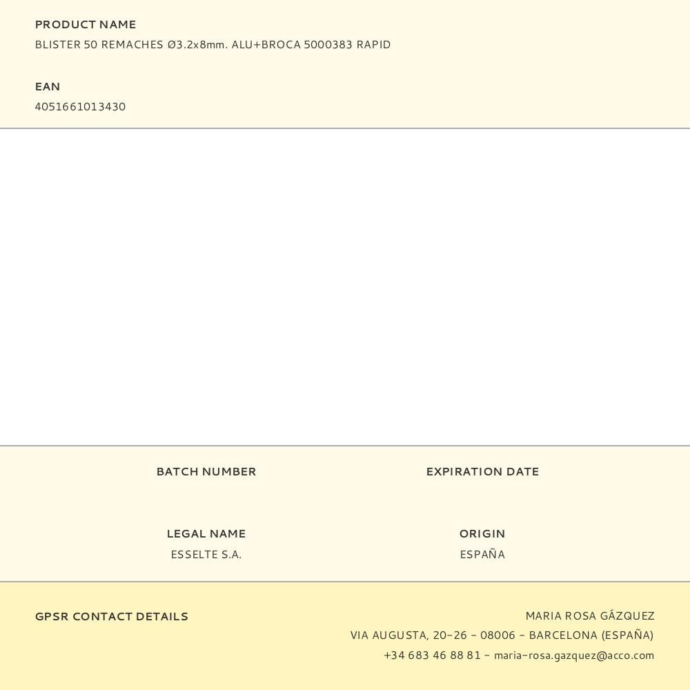 BLISTER 50 REMACHES Ø3.2x8mm. ALU+BROCA 5000383 RAPID
