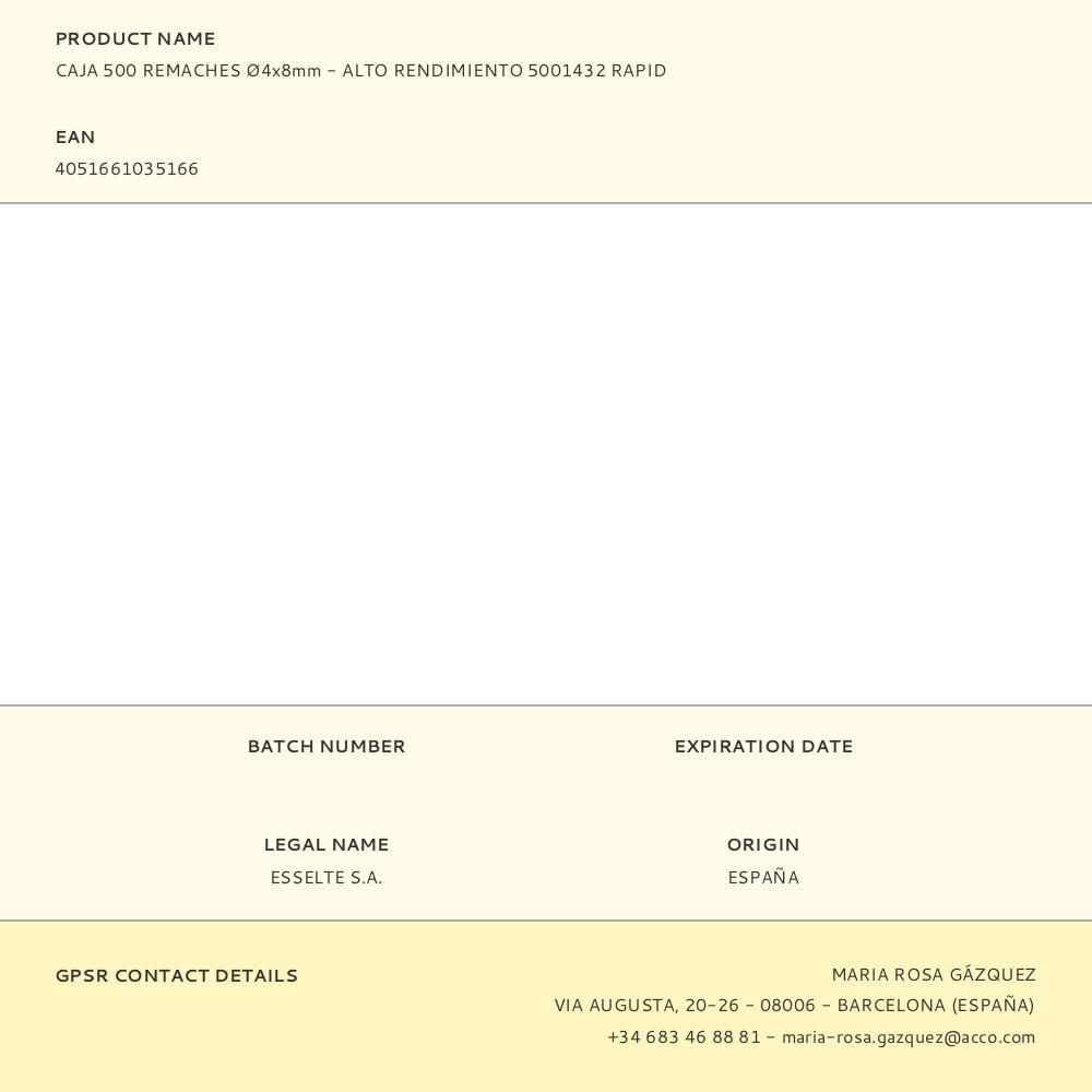 CAJA 500 REMACHES Ø4x8mm - ALTO RENDIMIENTO 5001432 RAPID