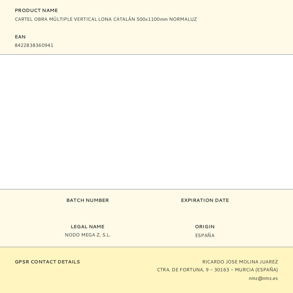CARTEL OBRA MÚLTIPLE VERTICAL LONA CATALÁN 500x1100mm NORMALUZ