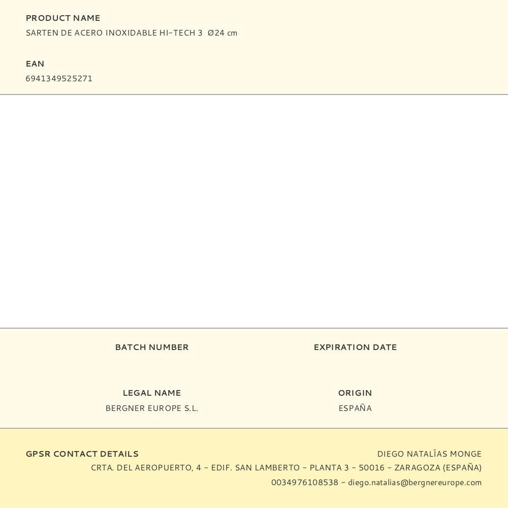 SARTÉN DE ACERO INOXIDABLE HI-TECH 3 Ø24 cm