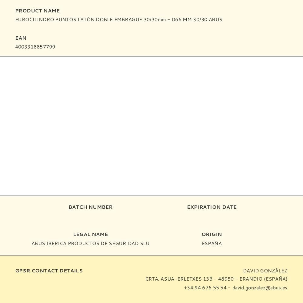 EUROCILINDRO PUNTOS LATÓN DOBLE EMBRAGUE 30/30mm - D66 MM 30/30 ABUS