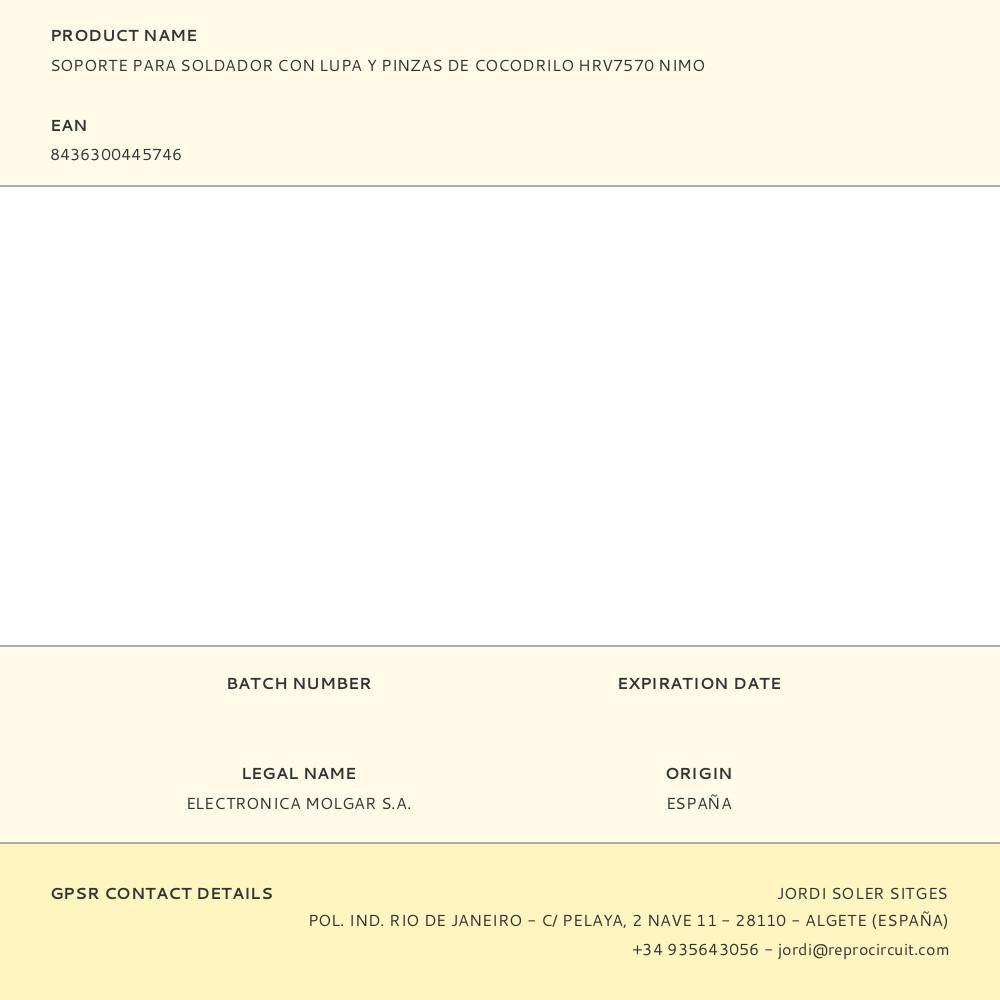 SOPORTE PARA SOLDADOR CON LUPA Y PINZAS DE COCODRILO HRV7570 NIMO