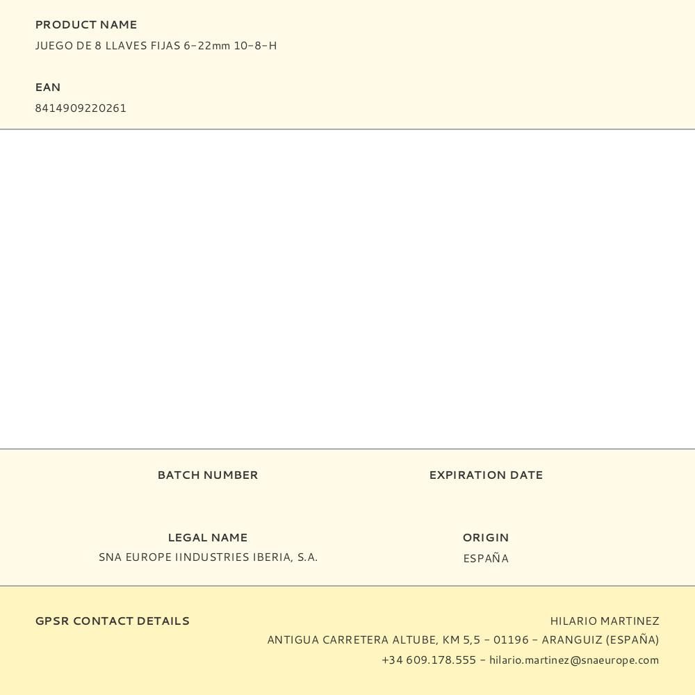 LLAVE FIJA 6 - 22 mm, JUEGO DE 8 PIEZAS