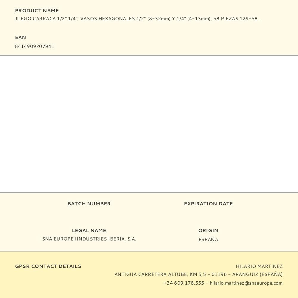 LLAVE DE CARRACA ½ Y ¼ pulg, VASOS HEXAGONALES ½ 8-32mm Y ¼ 4-13mm, JUEGO 58 PIEZAS