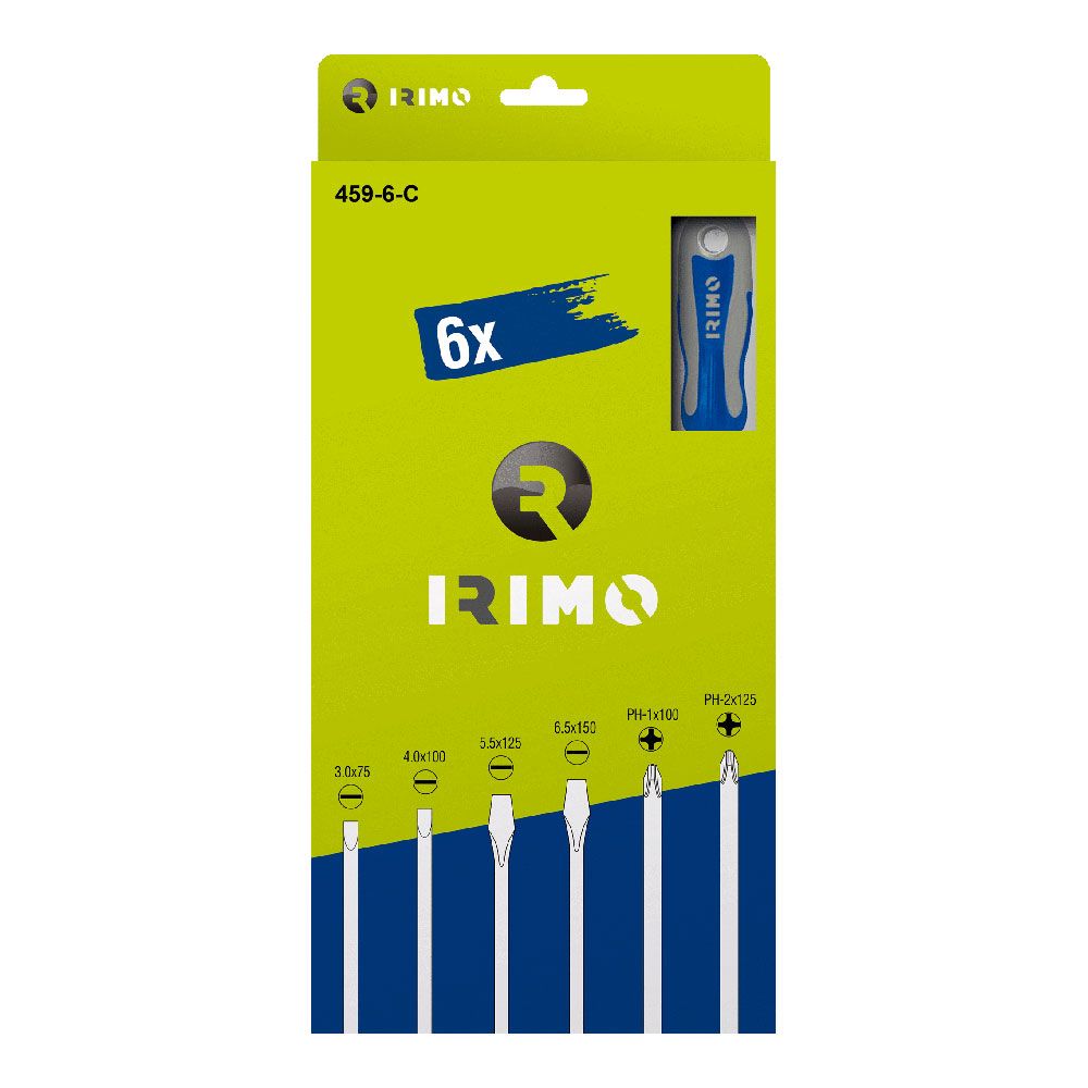 JUEGO DE 6 DESTORNILLADORES 2 PLANAS, 2 RECTAS, 2PH EN CAJA CARTÓN. INCLUYE 6 DESTORNILLADORES RANURADOS Y PHILLIPS. RANURADOS: 408-3-75 - 408-4-100 - 407-5.5-125 - 407-6.5-150. PHILLIPS: 409-1-100 - 409-2-125. PUNTA PULIDA CON ARENA PARA PROPORCIONAR UNA MAYOR ADHERENCIA CON EL DESTORNILLADOR Y GARANTÍA TOTAL CONTRA LA OXIDACIÓN. MANGO BI-COMPONENTE PARA UN AGARRE CÓMODO Y UNA GRAN TRANSFERENCIA DEL PAR. LA FORMA DEL MANGO IMPIDE QUE LA HERRAMIENTA RUEDE. CON AGUJERO PARA COLGAR. VARILLA DE ALEACIÓN DE ACERO DE ALTO RENDIMIENTO, CROMADO Y TOTALMENTE TEMPLADO. HOJA MARCADA DE FORMA PERMANENTE CON EL TAMAÑO Y EL NÚMERO DE SERIE PARA FACILITAR LA IDENTIFICACIÓN. EN CAJA DE CARTÓN