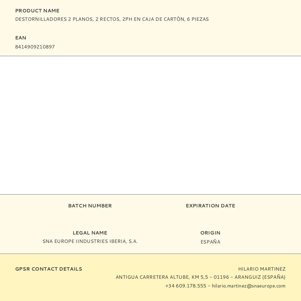 DESTORNILLADORES 2 PLANOS, 2 RECTOS, 2 PH EN CAJA DE CARTÓN, 6 PIEZAS