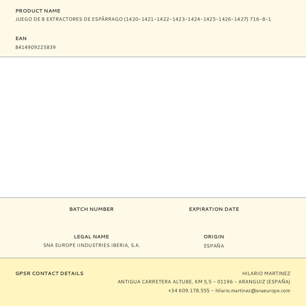 EXTRACTORES DE ESPÁRRAGO, JUEGO DE 8 PIEZAS
