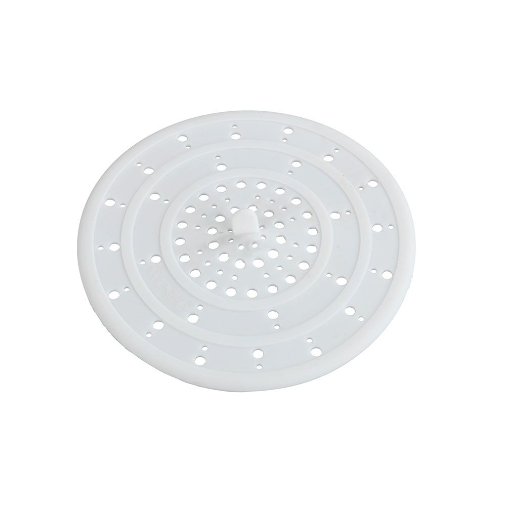 FILTRO DE DESAGÜE DE SILICONA SAVA, BLANCO 8183100 WENKO PONERLO SIMPLEMENTE EN EL DESAGÜE Y QUEDARÁN RETENIDOS TODOS LOS RESTOS EN EL COLADOR. DIMENSIONES APROX: Ø12x0,3cm (diametro/altura)