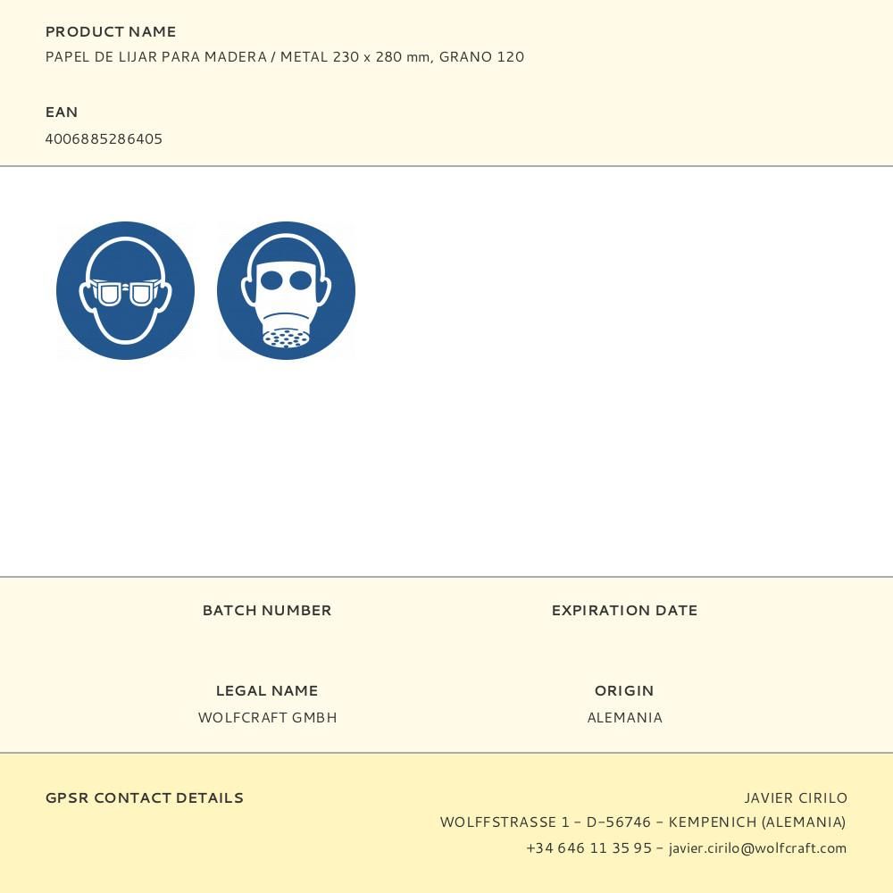 PAPEL DE LIJAR PARA MADERA / METAL 230 x 280 mm, GRANO 120