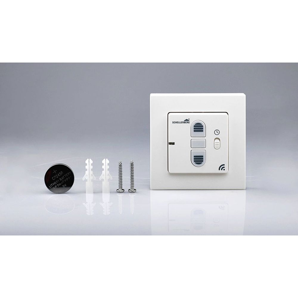 RELOJ TEMPORIZADOR INHALAMBRICO PARA PERSIANAS 20036 SCHELLENBERG. TEMPORIZADOR, CONTROL REMOTO E INTERRUPTOR DE PARED EN UN SOLO DISPOSITIVO. USOS VERSÁTILES PARA PERSIANAS Y TOLDOS INALÁMBRICOS CONTROL DE HASTA 5 UNIDADES INALÁMBRICAS A LA VEZ. CONTROL AUTOMÁTICO DE PERSIANAS Y TOLDOS CON EL TEMPORIZADOR CONVENIENTE (UN HORARIO DE APERTURA Y CIERRE PARA CADA DÍA DE LA SEMANA PROGRAMABLE). SOPORTE DE MARCO INCLUID. BATERÍAS DE 3 VOLTIOS INCLUIDAS (LITIO, CR 2450).