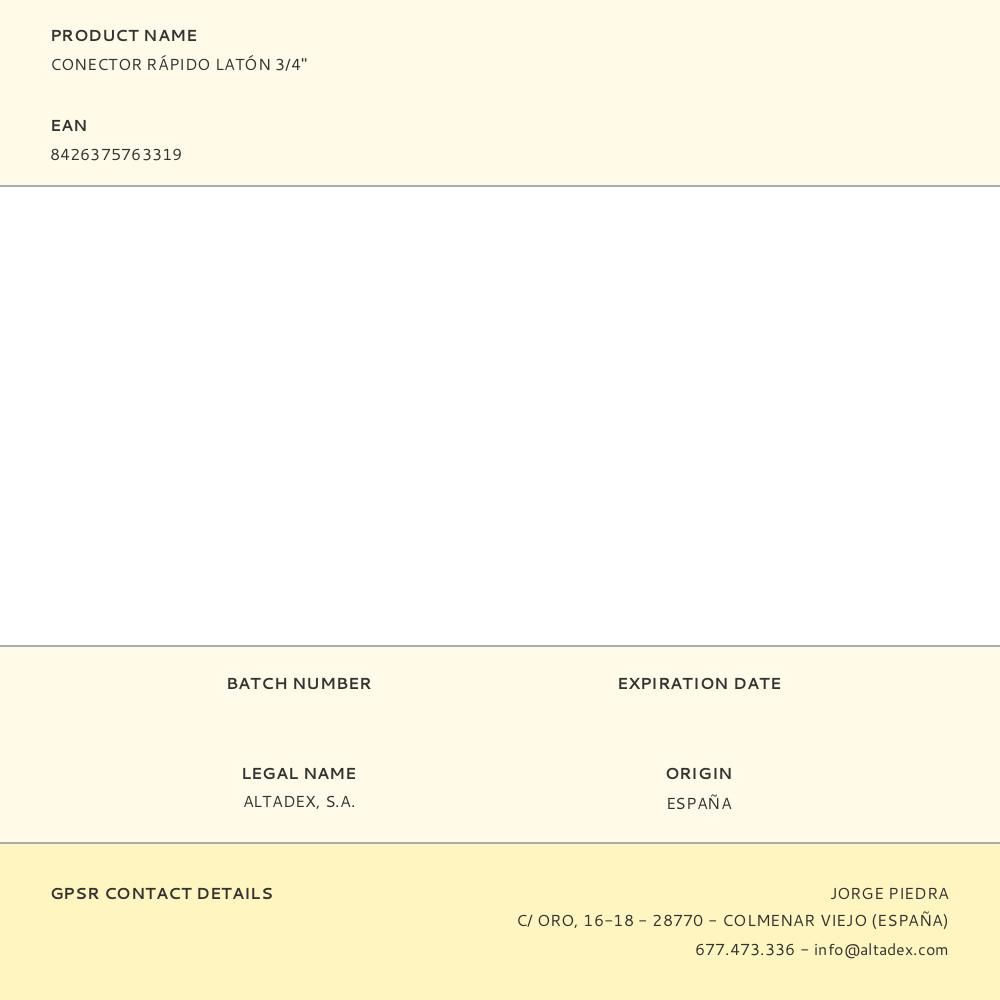CONECTOR RÁPIDO DE MANGUERA DE LATÓN ¾ pulg