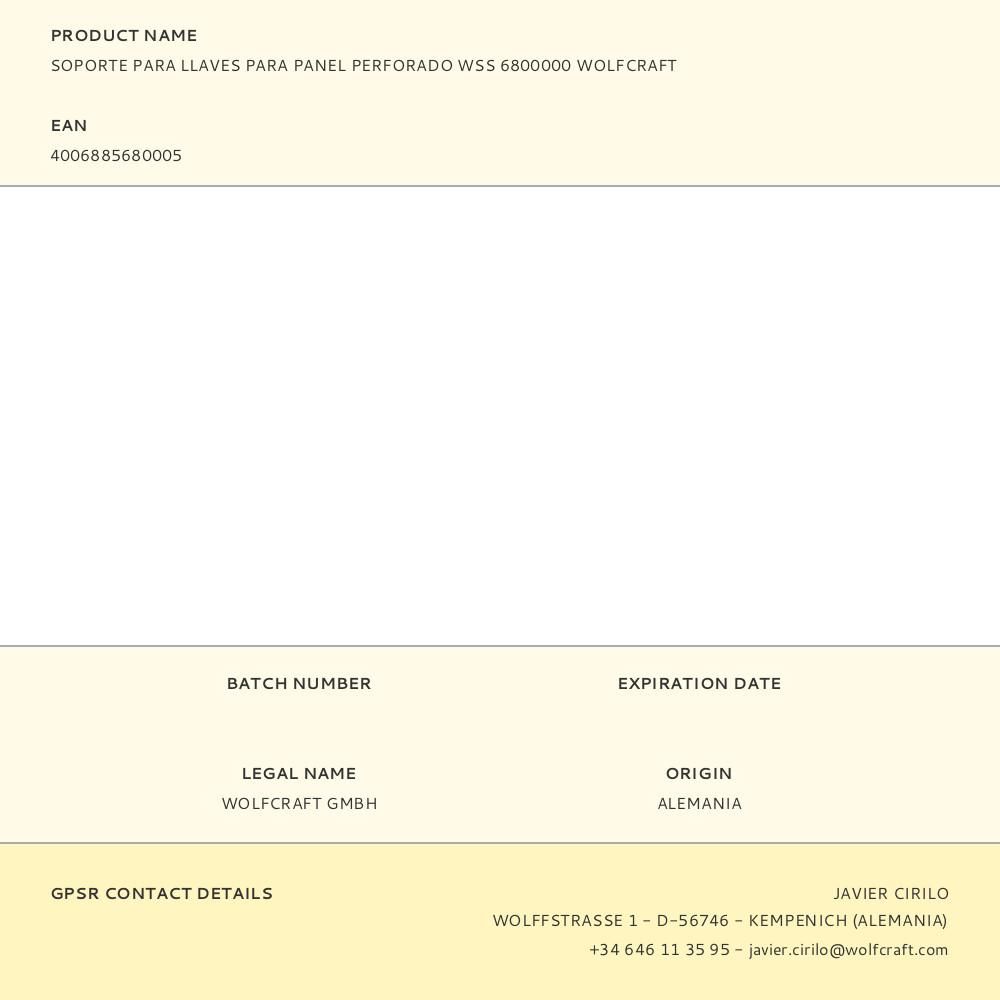 SOPORTE PARA LLAVES PARA PANEL PERFORADO WSS