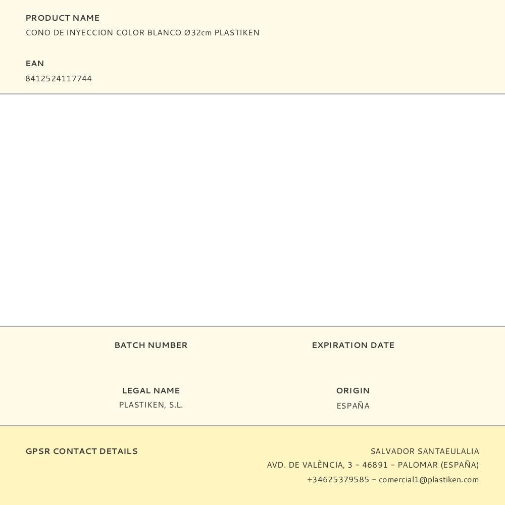 CONO DE INYECCION COLOR BLANCO Ø32cm PLASTIKEN