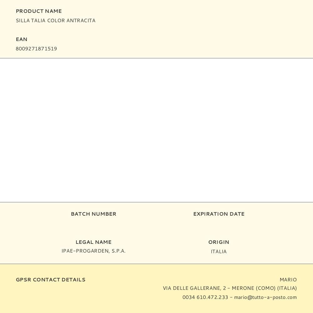 SILLA APILABLE. MODELO: TALIA. COLOR ANTRACITA. RESPALDO ALTO. USO DOMÉSTICO. MEDIDAS: 55 x 60 x 91 cm