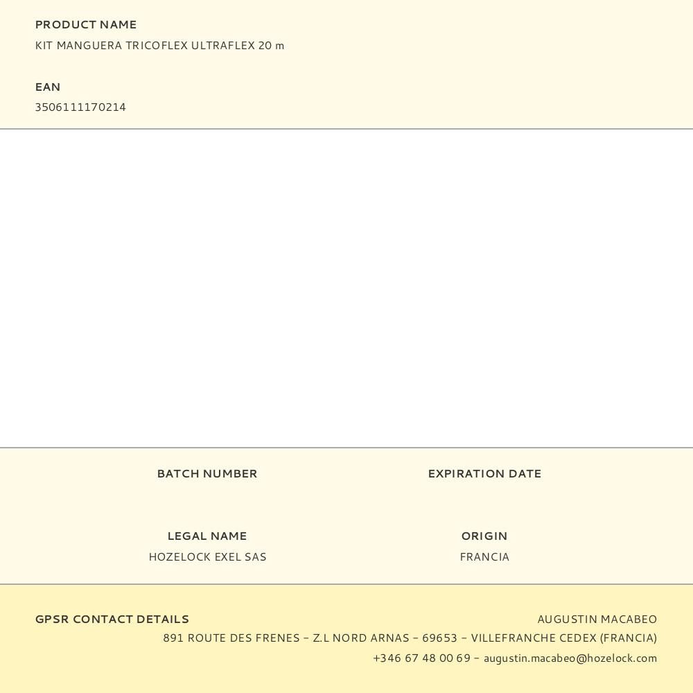 KIT MANGUERA TRICOFLEX ULTRAFLEX Ø15 mm, 5/8 pulg, 20 m