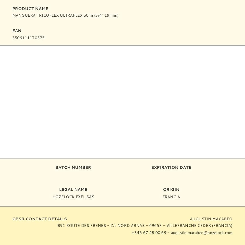 MANGUERA TRICOFLEX ULTRAFLEX Ø19 mm, ¾ pulg, 50 m