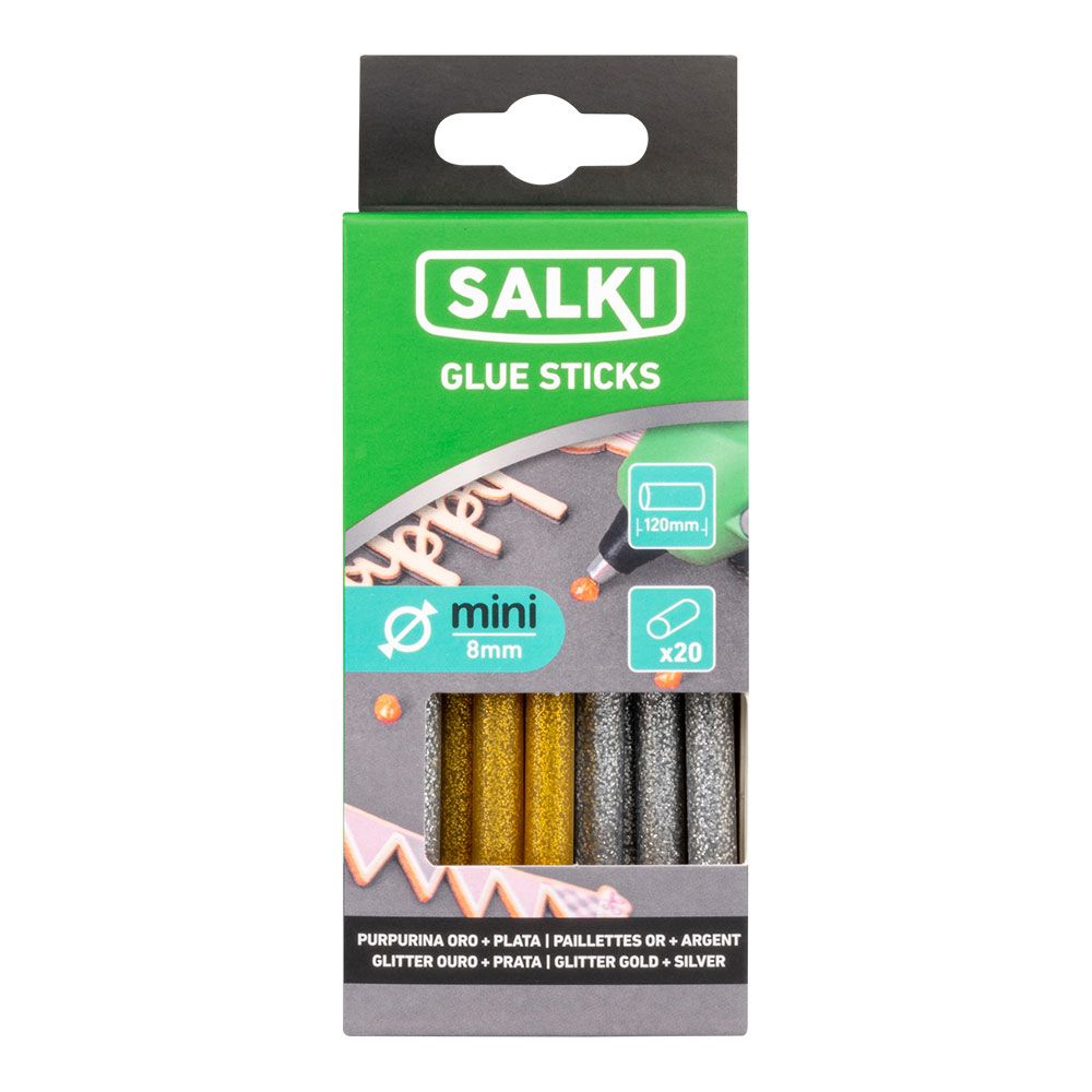 BARRA DE COLA TERMOFUSIBLE PERFECTAS PARA MANUALIDADES Y DECORACIÓN, PURPURINA DORADO + PLATEADO. Ø8 x 120 mm, BLISTER 20 uds