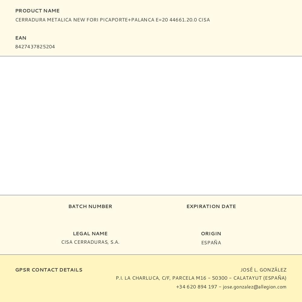 CERRADURA METALICA NEW FORI PICAPORTE+PALANCA E=20 44661.20.0 CISA