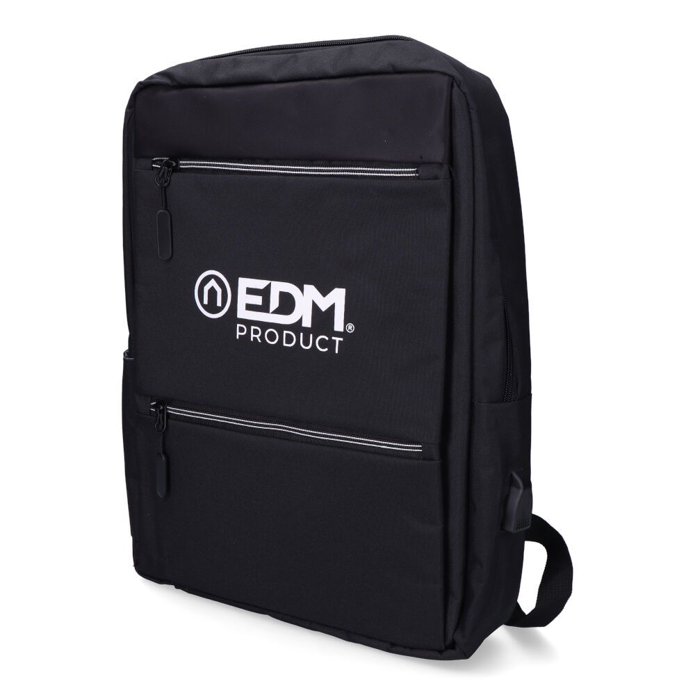 MOCHILA DE OFICINA NEGRA PIERRE DELONE. MEDIDAS: 32x42x12cm (alto/ancho/profundo). 100% POLIÉSTER. INTERIOR ACOLCHADO PARA PORTATIL. PORTABOTELLAS. CONEXIÓN USB PARA POWER BANK (NO INCLUIDA). SUJECIÓN ELÁSTICA PARA LLEVAR EN UN TROLLEY. TIRANTES ACOLCHADOS.