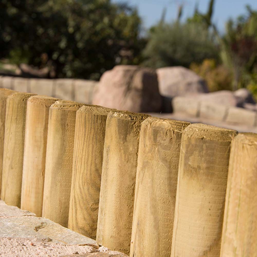 BORDURA DE MADERA VAMPIRO FIJA CON UN LARGO DE 98cm, ALTO DE 30cm, CON UN ANCHO DE TABLA DE 7cm Y UN RADIO DE TABLA DE 3,5cm. CON PROTECCIÓN AUTOCLAVE NIVEL 3 FAURA