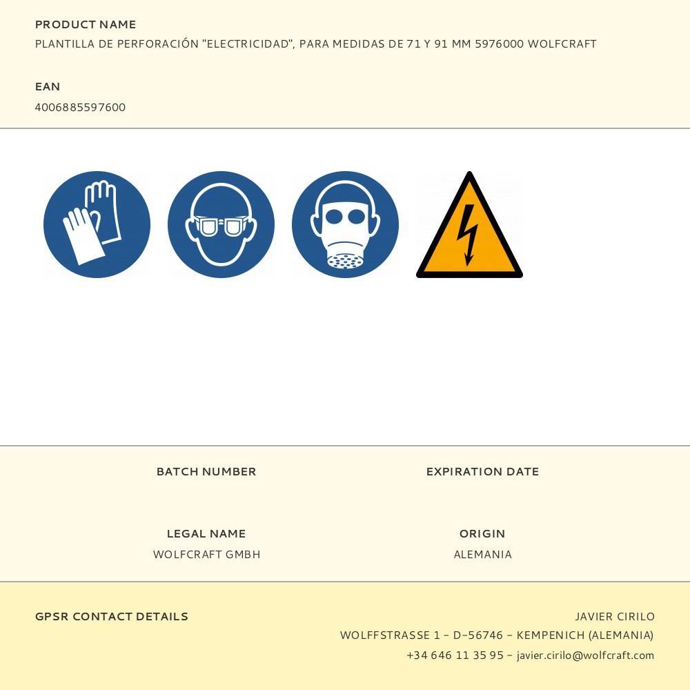 PLANTILLA DE PERFORACIÓN ELECTRICIDAD, PARA MEDIDAS DE 71 Y 91 mm