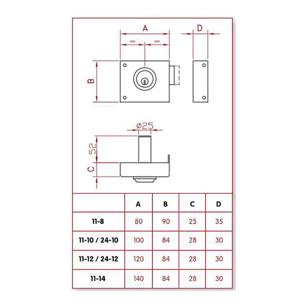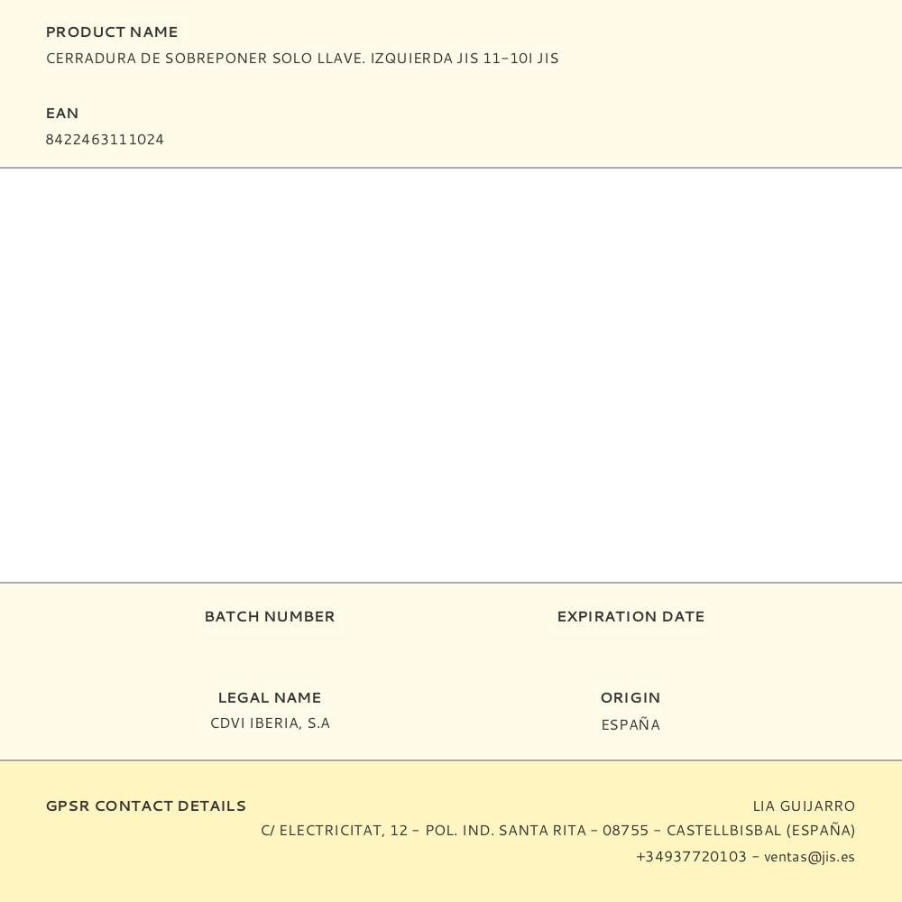CERRADURA DE SOBREPONER SOLO LLAVE. IZQUIERDA JIS 11-10I JIS