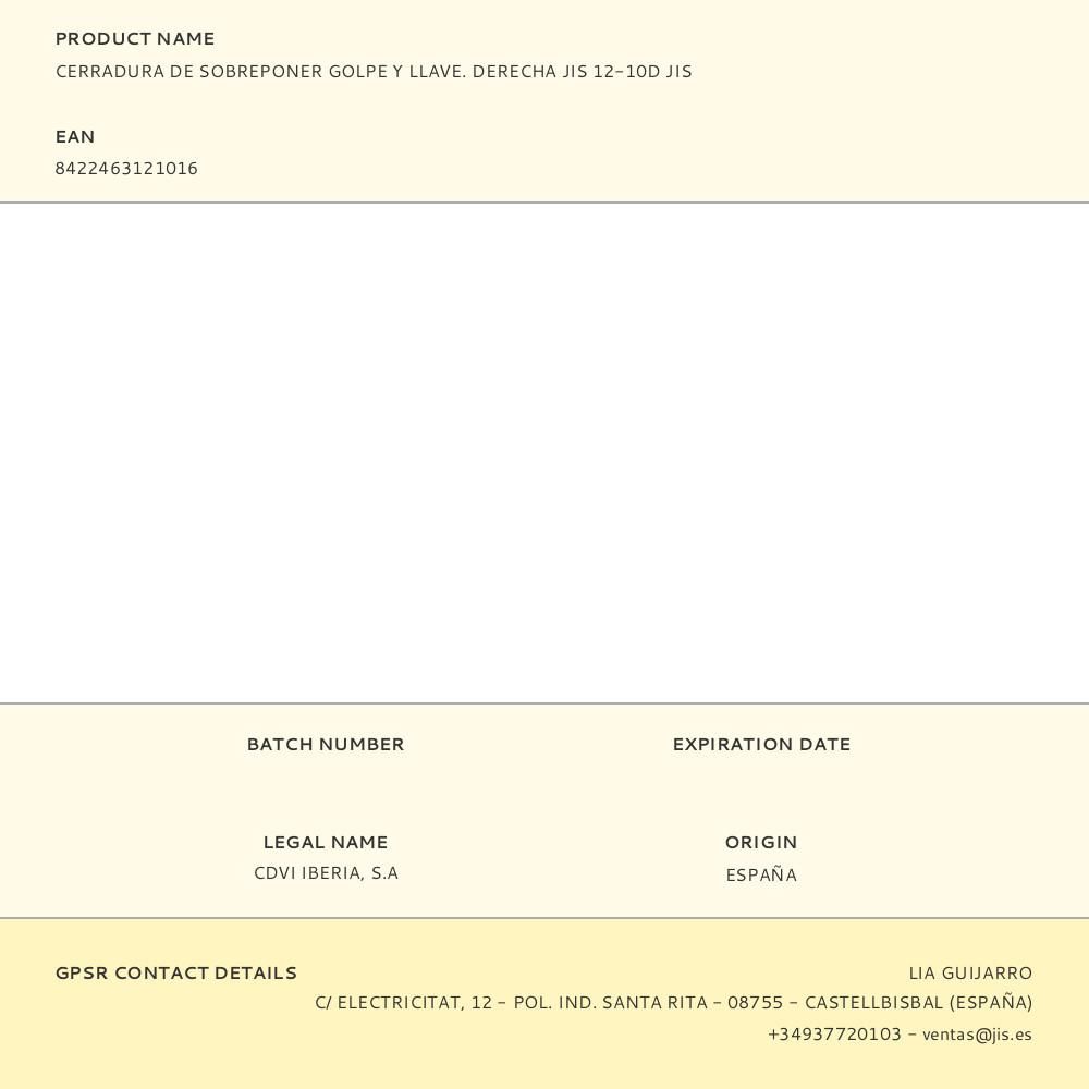 CERRADURA DE SOBREPONER GOLPE Y LLAVE. DERECHA JIS 12-10D JIS