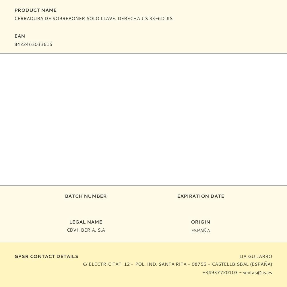 CERRADURA DE SOBREPONER SOLO LLAVE. DERECHA JIS 33-6D JIS