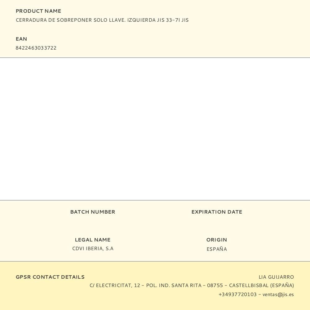 CERRADURA DE SOBREPONER SOLO LLAVE. IZQUIERDA JIS 33-7I JIS