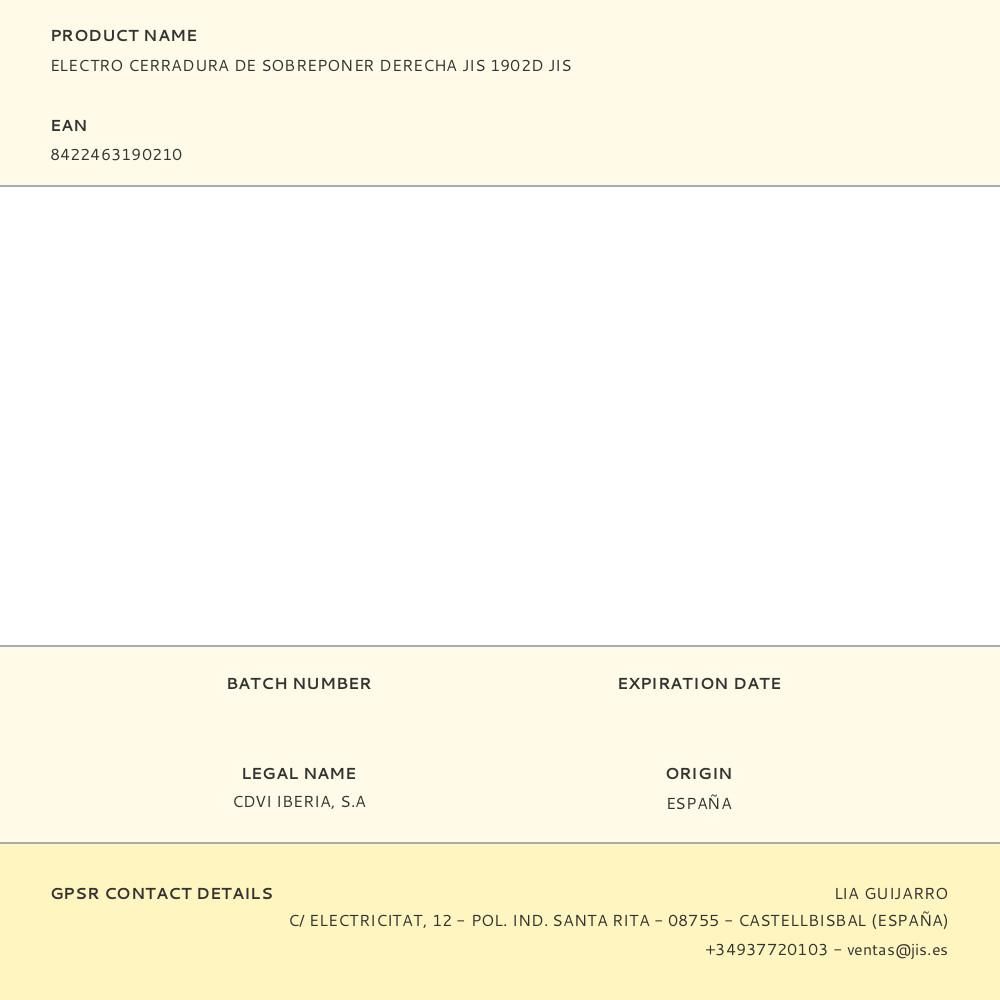 ELECTRO CERRADURA DE SOBREPONER DERECHA JIS 1902D JIS