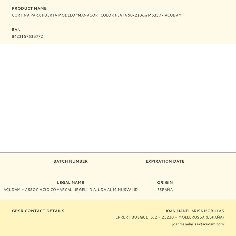 CORTINA PARA PUERTA MODELO MANACOR COLOR PLATA 90 x 210 cm