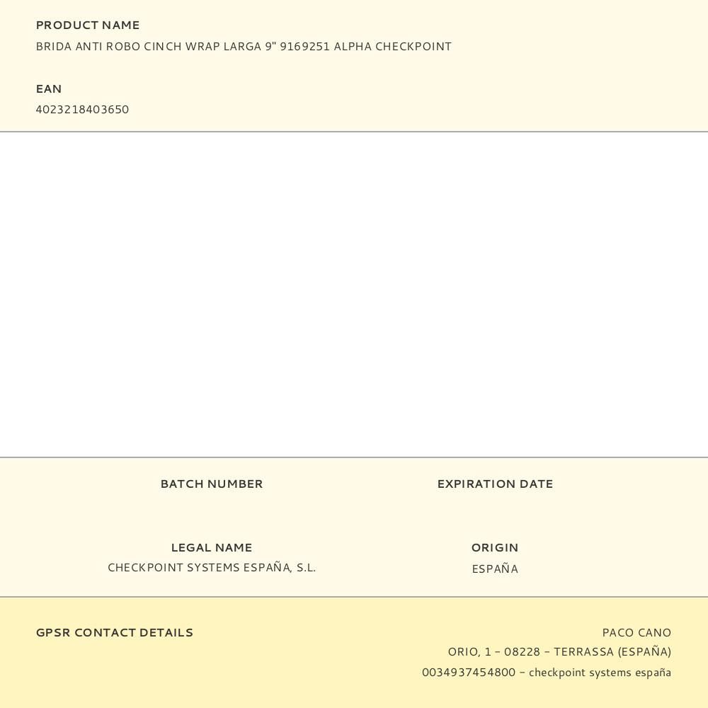 BRIDA ANTI ROBO CINCH WRAP LARGA 9'' 9169251 ALPHA. 2,5x32,4cm CHECKPOINT
