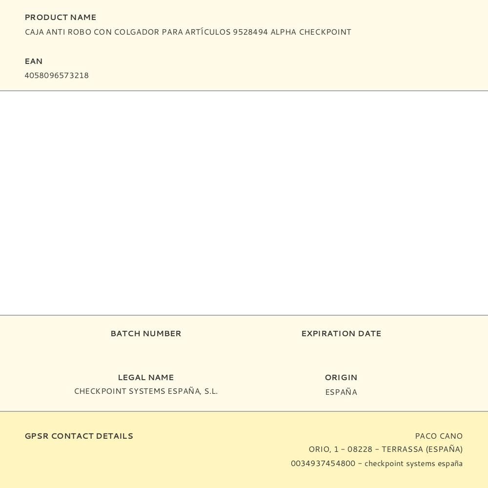 CAJA ANTI ROBO CON COLGADOR PARA ARTÍCULOS 9528494 ALPHA CHECKPOINT