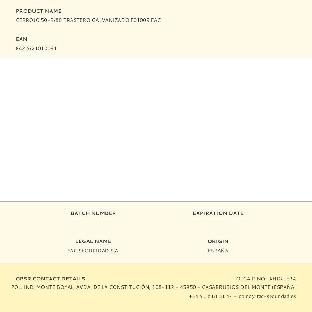 CERROJO 50-R/80 TRASTERO GALVANIZADO F01009 FAC CERROJO CONCEBIDO PARA SU INSTALACIÓN EN PUERTAS DE TRASTERO. INCLUYE KIT PAR FACILITAR SU CORRECTA INSTALACIÓN EN ESTE TIPO DE PUERTAS DONDE CON FRECUENCIA SE PUEDEN ENCONTRAR DIFERENCIAS DE NIVEL ENTRE MARCO Y PUERTA. INCLUYE TORNILLOS PASANTES Y SUPLEMENTOS DE ESCUDO PARA EL EXTERIOR. CONTIENE 3 LLAVES DE SERRETA