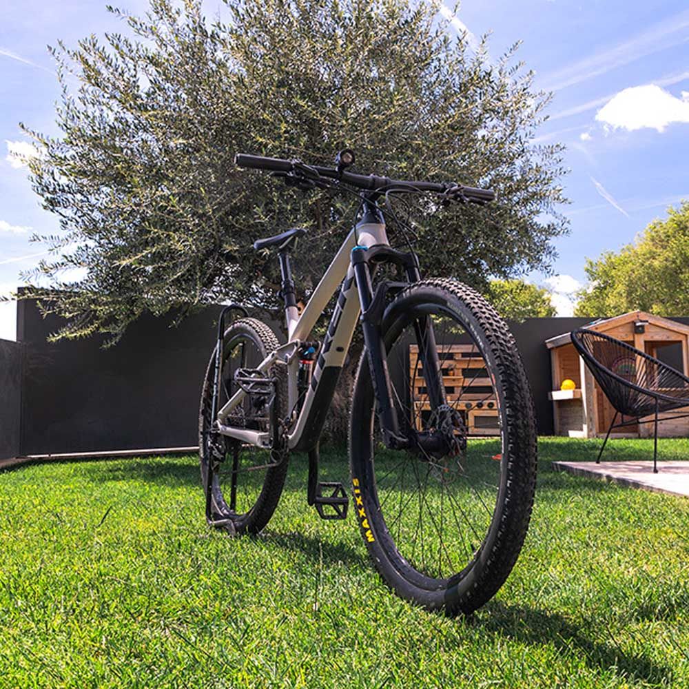 FOCO LED DE ALUMINIO RECARGABLE, FUNCIÓN FRONTAL / BICICLETA. VARIAS POTENCIAS DE LUZ E INTERMITENTE :180 lm, 50 lm, FLASH, 5 W, 9500 K. APERTURA FOCO LED AJUSTABLE. INCLUYE CINTA AJUSTABLE PARA USAR COMO LINTERNA DE CABEZA O SOPORTE PARA FIJAR EN EL MANILLAR DE LA BICICLETA. IP54, INCLUYE 4 BATERÍAS DE 3,7 V 1.200 mAh (CARGA DE 7 HORAS) Y CARGADOR. DIMENSIONES FOCO LED: 6,8 x 4,3 x 5,2 cm. HASTA 22 HORAS DE AUTONOMÍA