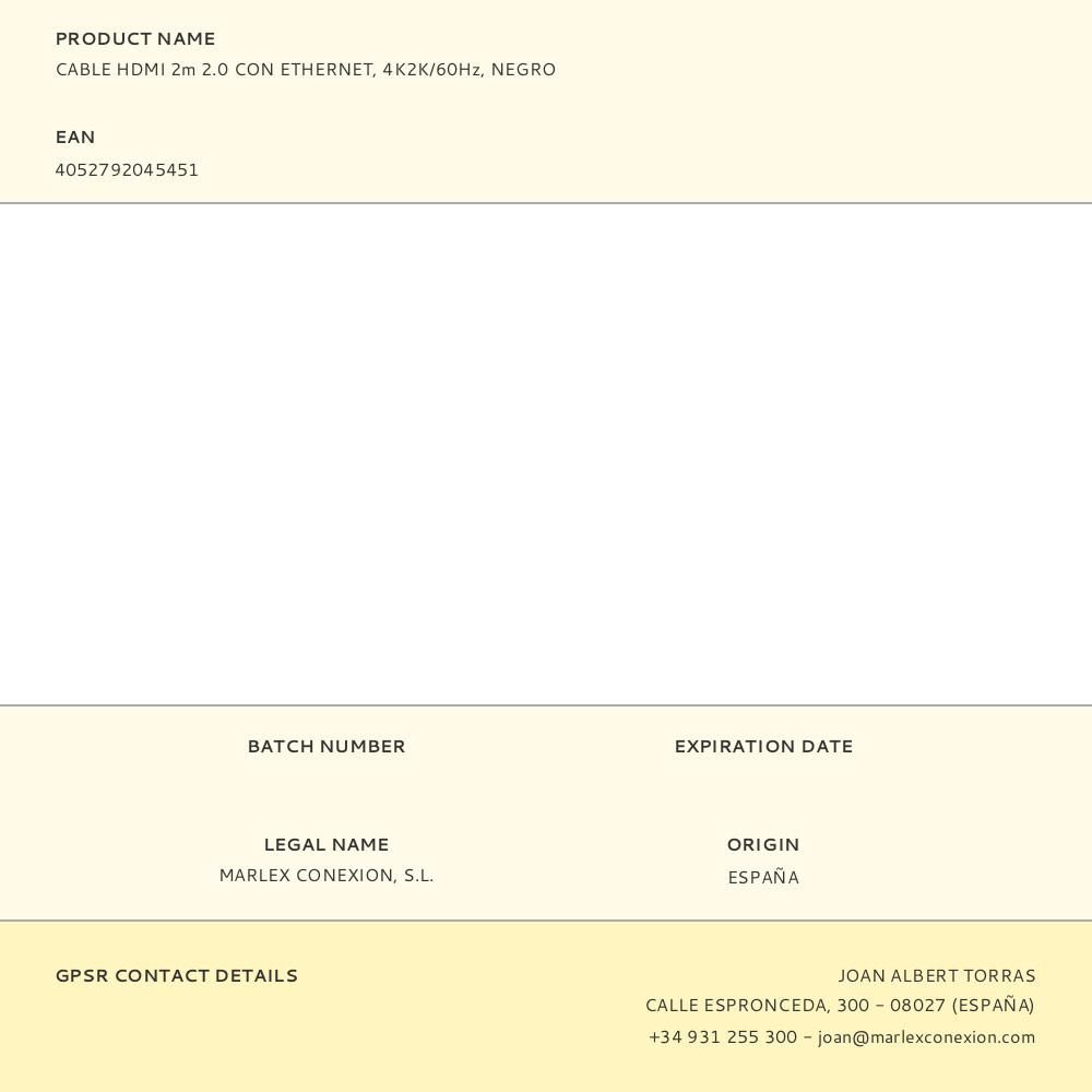 CABLE HDMI 2m 2.0 CON ETHERNET, 4K2K/60Hz, NEGRO